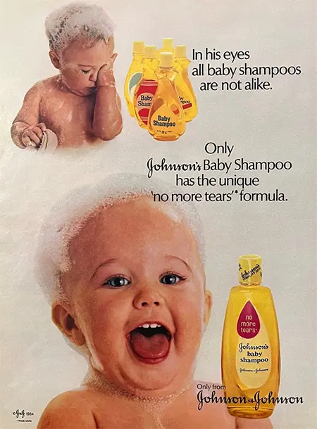 Consider the famous No More Tears slogan for baby shampoo. Crying is a normal and natural experience, but this phrase suggests the emotional response is a preventable failure and the perfect mother can eliminate the stress of bathtime by buying the product.